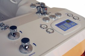 Управление процедурами обеспечивается с помощью простого надежного пневматического или электронного управления. Ванны можно оснастить озонатором, УФ лампой, лампой для цветовой терапии, ароматерапией, устройством для поддерживания температуры воды, электронного наполнения, дополнительным клапаном для подачи воды с примесями, промывкой гидромассажной системы, стоком воды в целях регенерации. Предлагается широкий выбор расцветки покрытия декоративных защитных панелей ванны. Кроме предлагаемых стандартных моделей AQUADELICIA I – VIII, при изготовлении ванн можно учесть и специфические требования заказчика.